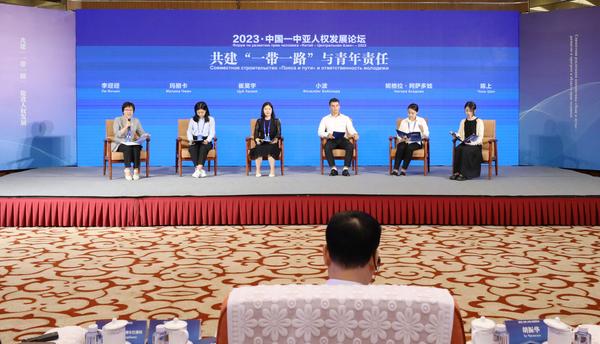 本次论坛还设置了嘉宾对话环节。来自中国和中亚地区的专家学者、媒体负责人及青年代表围绕“共建‘一带一路’与人权发展进步”“共建‘一带一路’与青年责任”等议题分别进行了专家对话和青年对话,充分交流探讨,发表真知灼见。我校优秀留学生代表小波,和来自哈萨克斯坦的黄琳娜同学分别在第二场和第四场青年对话中进行了精彩分享。
