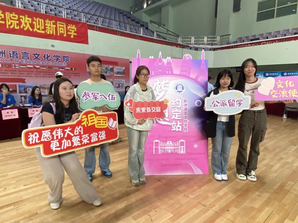 欧洲语言文化学院“梦想约定站”吸引新生们驻足打卡,小萌新们纷纷截取自己的愿望:未来外交官、参军入伍,亦或是考研上岸,成为备受新生喜爱的 Top梦想,同学们带上自己的“梦想徽章”,在梦想约定站留影完成“我与梦想有个约定”。