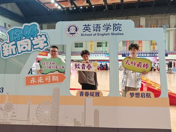 英你精彩,语你成长。英语学院为萌新们提供创意打卡墙、各式各样的手举牌以及英院专属“新生包”等,满满的仪式感帮助新生快速融入新环境,开启新征程!往前走,迎接他们的是老师和助理辅导员亲切的笑容,在此,萌新们领取了英语人的专属帆布包。回头看,“时光列车”拍照墙受到了同学们的一致欢迎!同学们纷纷挑选自己心仪的手举牌标语,在“火车头”前打卡拍照,“坐”上了这辆开向新学期的列车。