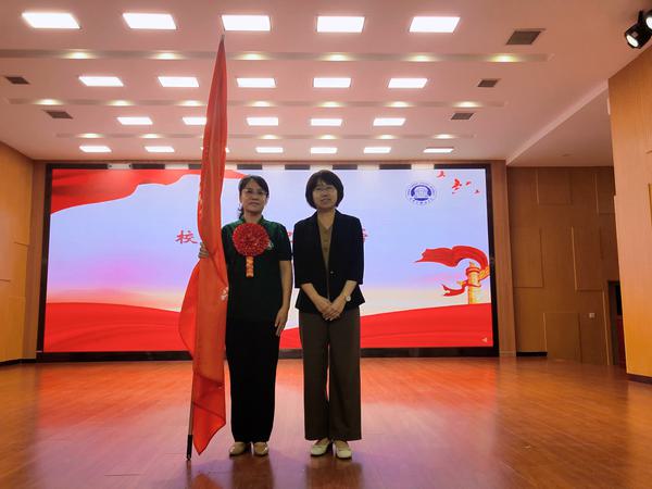 出征仪式在庄严的国歌声中拉开帷幕,校党委书记周红蕾为支教团授旗,象征光荣与使命的旗帜高高挥舞,代表支教团师生将为教育事业扬起理想和信念,在和田的热土上播撒青春的希望和梦想。