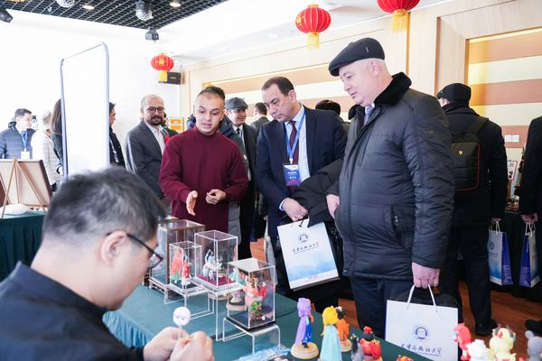 在津期间,校长团在我校80名师生俄语翻译和志愿者的陪同下,参观了天开高教科创园科技成果展、鼓楼博物馆、北疆博物院,游览了古文化街,赴开云登陆入口、天津师范大学、天津工业大学和天津理工大学参观访问。我校为来宾精心准备了津派面塑、扎染技艺、毛猴制作技艺等丰富多彩的非遗展示,生动展现了天津独特的文化魅力和深厚的历史底蕴。在国际交流中心,校长团还沉浸式体验了“煎饼果子”“耳朵眼炸糕”的制作过程,美味的民间小吃,让代表团成员回味无穷,交口称赞。通过参观交流,校长团对天津城市和文化发展历史有了初步认识,对天津民间传统文化特色和国家级非物质文化遗产有了直观感受,对天津高等教育的办学特色和教学科研优势有了深入了解,将有助于夯实双方合作基础,进一步深化交流合作。