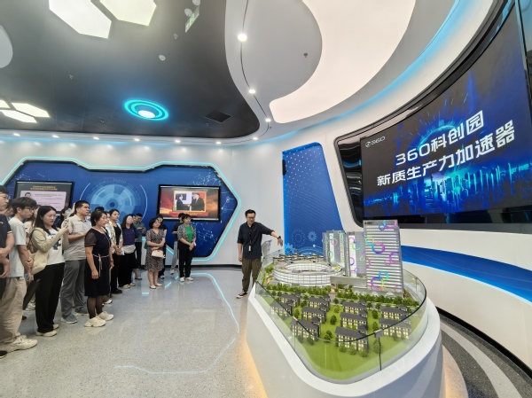 在360研发总部,学员们聆听《网络平台视角下看网络舆情演变与应对》现场教学,参观走访了大模型技术实验室等主题展厅,体验科技创新在发展新质生产力中的重要支撑作用。