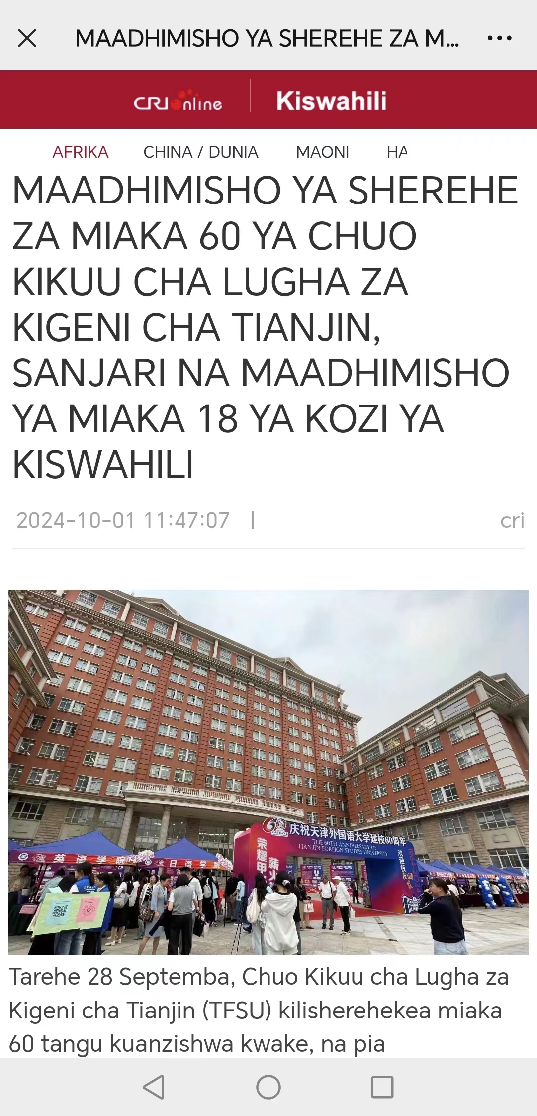 【葡萄牙驻华大使馆微信公众号】【白俄罗斯外交部网站】【中央广播电视总台斯瓦希里语网站】葡萄牙驻华大使馆微信公众号、白俄罗斯外交部网站、中央广播电视总台斯瓦希里语网站等涉外单位及媒体机构报道我校校庆纪念大会及系列活动