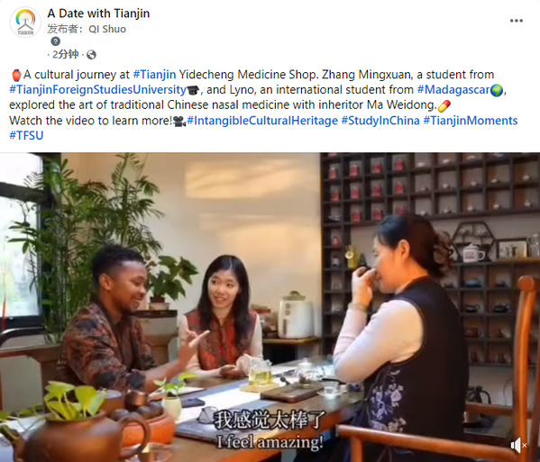 12月18日,海外Facebook账号“A Date with Tianjin(天津有约)”发布两部面向国际讲好天津故事的系列英语短视频“Kicking it in Tianjin!”“A Cultural Journey at Tianjin Yidecheng Medicine Shop”,均由开云登陆入口国际传媒学院新闻传播学专业师生策划、采访、拍摄并制作完成。师生们在“天津有约”通过天外声音,向世界讲好天津故事,彰显了国际传播中的天外之为。