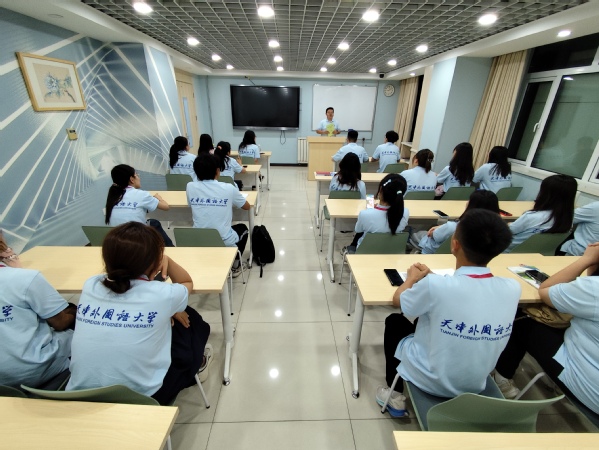 培训期间,培训中心举办了医疗急救知识讲座、支教团师生经验分享会、模拟授课交流展示活动、爱国主义电影观影活动等。天外赴疆实习支教团开展了团内交流会,大家围坐一堂,畅谈培训的收获与感动,分享不同学科背景下的教学启迪,诉说着对即将踏上新的旅程的憧憬。此外,还民主投票决定团内各项事务,举行了紧张而精彩的模拟授课展示选拔赛,学员们将所学融入教学片段,精心设计,各展所长。经过角逐和评审,脱颖而出的4位天外学子面向9所高校培训学员进行了模拟授课展示。讲台上,他们自信从容,将习得的教学理念、巧妙的教学设计和扎实的教学基本功展现在大家面前,赢得了现场阵阵掌声。