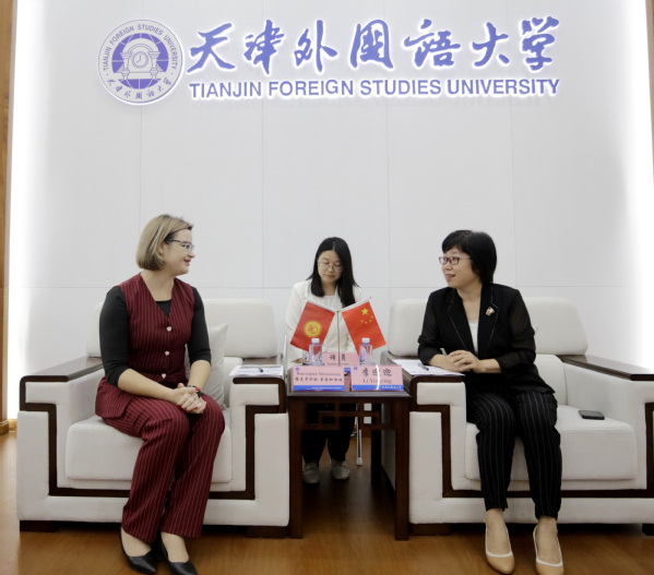 李迎迎对莫兹加切娃·维克多利娅一行表示欢迎,并向来访客人简要介绍了天外的办学历史、学科专业、人才培养、国际化办学、基础教育等校史校情。她指出,天外重视与吉尔吉斯斯坦高校的交流与合作,与奥什国立大学建有校际交流关系。天外已开展国际中文教育40余年,是国家语言文字推广基地、天津市津派文化国际传播基地、天津市国际中文教育人才培养中心,建有天外教育集团,愿与比什凯克市在教育科技、语言文化、青年交流、基础教育以及人工智能赋能高等教育等领域开展合作,特别是合作建设津比青少年语言文化交流中心,组织学生到比什凯克市教育机构学习交流,互办文化节,加强两个友城经贸、历史、人文等领域的研究,推动深化两个友城之间的交流。欢迎比什凯克市组织大中小学生到天外开展文化交流活动、学习汉语。