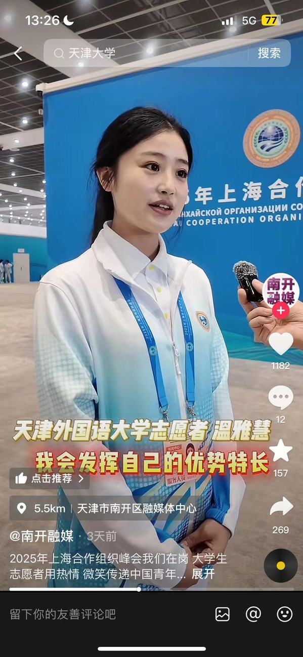 此次高水平的志愿服务,不仅保障了盛会的顺利举行,更是一次深刻的实践育人课。天外青年们以出色的表现,完美展现了当代中国青年开放自信、乐于奉献的国际形象。他们,无疑是上合峰会中最闪亮的“青年名片”,也向世界宣告:中国新生代的力量,正自信地走向世界舞台的中央。