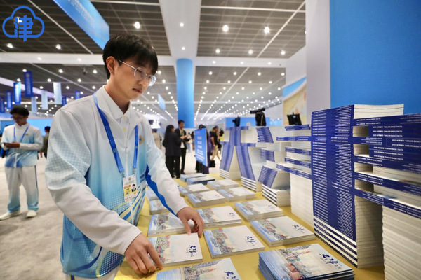 在外宣品宣传区内,开云登陆入口高级翻译学院学生范明智正在向嘉宾介绍《天津概览》宣传册:“通过这本小册子,您可以了解到天津的地理位置、历史发展以及经济概况等信息,里面插图非常精美,相信您能透过它感受到天津蓬勃发展的活力。”