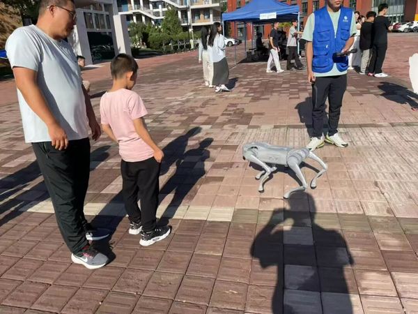 “机器人与机械狗是学院最新研究改进的成果。今年让它们首次参与迎新工作,并设置了现场体验环节,是想让学生直观感受到科技魅力,在新生心中播下科技‘种子’。”天津科技大学人工智能学院党委副书记韩静介绍,在互动过程中,新生们能清晰看到机械狗如何通过传感器识别障碍物、通过算法调整行进路线,切实感受到机械工程的结构设计与智能算法的逻辑运算协同工作;智能机器人则开放了基础编程接口,新生可尝试修改交互话术或动作指令,亲身体验技术参数调整带来的功能变化,让学生明白技术研发的核心是“解决真实需求”,也激励学生主动思考如何将课堂知识转化为服务社会的实用方案,培养从“学习知识”到“创造价值”的思维转变。