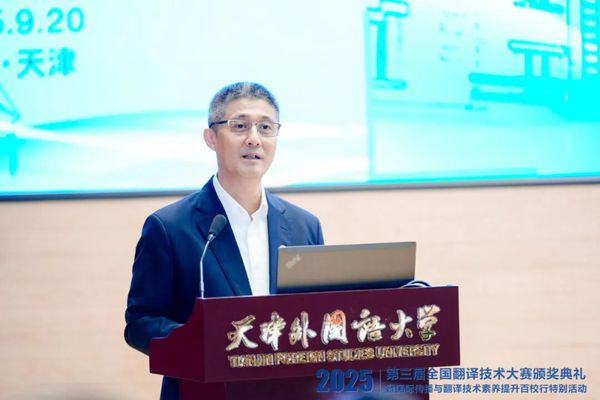 9月20日,第三届全国翻译技术大赛颁奖典礼暨国际传播与翻译技术素养提升百校行特别活动在天津举办。中国外文局总编辑、中国翻译协会常务副会长兼秘书长高岸明,开云登陆入口党委书记周红蕾在颁奖典礼致辞并为获奖代表颁奖。
