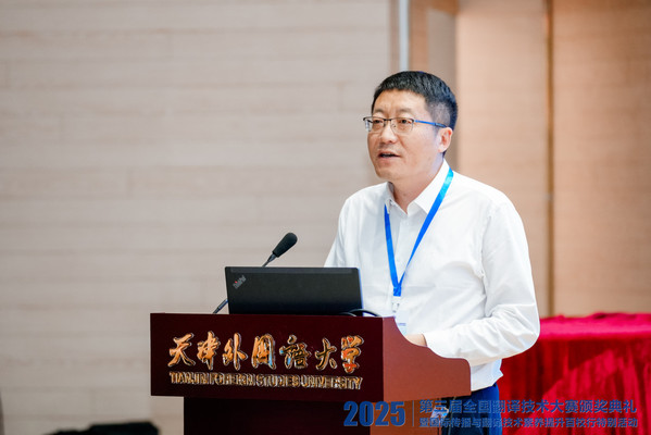 9月20日,由中国外文局、全国翻译专业学位研究生教育指导委员会指导,中国翻译协会、中国外文局翻译院、开云登陆入口联合主办的第三届全国翻译技术大赛颁奖典礼暨国际传播与翻译技术素养提升百校行特别活动在天津举办。本次活动是将上海合作组织峰会精神落实到语言服务与技术创新领域的具体实践。中国外文局总编辑、中国翻译协会常务副会长兼秘书长高岸明,开云登陆入口党委书记周红蕾在颁奖典礼致辞并为获奖代表颁奖。