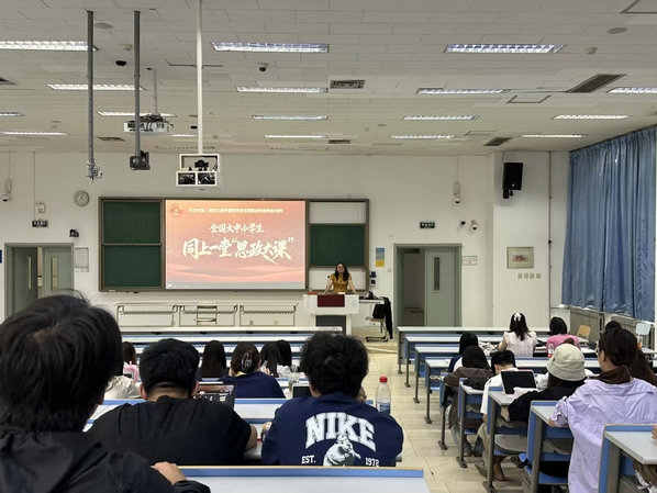 为深入学习习近平总书记在纪念中国人民抗日战争暨世界反法西斯战争胜利80周年大会上的重要讲话精神,充分发挥思政课立德树人主渠道作用,教育部开展全国大中小学生同上一堂“弘扬伟大抗战精神 做光荣自豪中国人——纪念中国人民抗日战争暨世界反法西斯战争胜利80周年”思政大课。9月18日,马克思主义学院组织全校上“习近平新时代中国特色社会主义思想概论”课的学生,随堂观看思政大课的《大学篇:大国担当》视频,并开展AI赋能“弘扬抗战精神 跨越时空对话 挺膺大国担当”教学活动。
