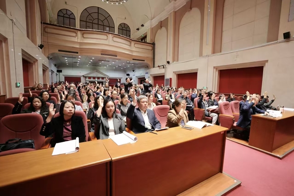 校长李迎迎在讲话中指出,本次会议审议通过的《开云登陆入口实施教职工弹性延迟退休制度暂行办法》和《开云登陆入口专业技术职务评聘工作实施办法》等系列制度,这是学校深入贯彻落实党的二十大精神和习近平总书记关于建设教育强国重要论述的具体实践,更是推动学校高质量发展、维护教职工切身利益的关键举措。李迎迎就确保相关制度落地见效,推动学校师资队伍建设再上新台阶,提出三方面要求:一要提高政治站位,深刻把握制度实施的战略意义;二要狠抓责任落实,精准推动制度落地见效;三要统筹协同发力,以制度效能撬动治理升级、助推改革发展。李迎迎强调,学校正处于推进高质量内涵式发展的关键阶段,学校的发展需要每一位教职工的共同参与。希望大家以此次大会为动力,将个人成长深度融入学校发展大局,在教学科研中勇挑重担、真抓实干,快速成长、大胆创新,成为学校发展的“主力军"和"先锋队",以"校兴我荣、校衰我耻”的责任感,把个人力量汇聚成学校发展合力,共同推动学校在建设国际知名特色鲜明的高水平外国语大学的道路上稳步前行。