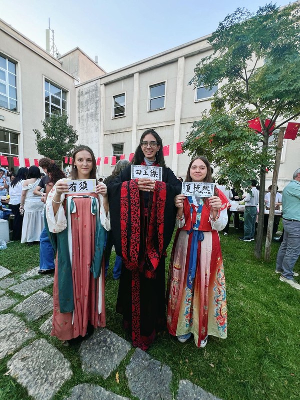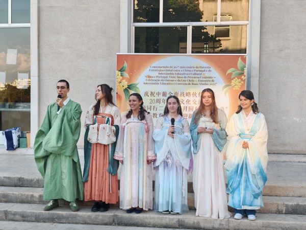 在随后的游园会上,孔子学院教师带来了沉浸式中华文化体验:馥郁的茶香、典雅的汉服与秀丽的书法让葡萄牙学生深切感受中国文化的独特魅力。中国留学生准备的月饼与美食,让中葡师生共同品味“家的味道”。活动在欢声笑语中圆满结束,成为连接两国青年的一场文化盛会。
