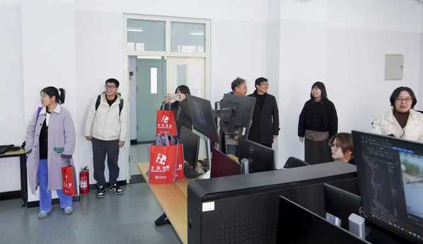 会后,调研团队实地参观了项目专属的动画实验室、联合创新工作室,考察了3D动画工作站、集群渲染系统等教学设施,学习实践教学平台搭建的先进做法。