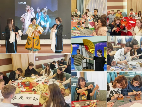 该项目巧妙将语言教学与文化体验相结合,精心设计多元化学习体系。在汉语课堂上,专业教师团队结合学生的语言水平与学习需求,设计了生动有趣的汉语课程,通过情景模拟、小组互动、趣味游戏等方式,帮助他们从“敢开口”逐步过渡到“会交流”,为文化体验与实地探访筑牢语言基础。同时,项目开设剪纸、书法、京剧、皮影制作、团扇绘制、青花瓷DIY等中华文化实践课程,邀请专业指导教师现场教学,让学生们亲手剪“福”字、临摹汉字、绘制京剧脸谱与青花瓷盘,在动手实践中感受中华传统技艺的独特韵味,课堂氛围活跃且富有感染力。