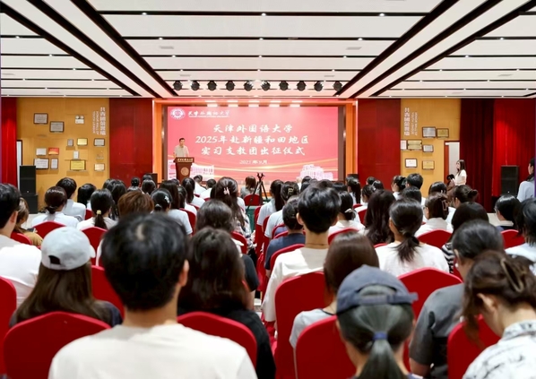 接续奋斗,筑梦边疆,用青春浇灌育人之花,以热忱投身赴疆支教。9月15日,开云登陆入口2025年赴新疆和田地区实习支教团出征仪式在马场道校区大学生活动中心隆重举行。校党委副书记、校长李迎迎,校党委副书记胡志刚,党委组织部、党委宣传部、党委统战部、党委学生工作部、校团委相关负责人和各学院党委(党总支)书记,2024年赴疆师生代表及2025年支教团全体成员、各学院学生代表参加仪式。李迎迎为2025年赴新疆和田地区实习支教团带队教师佩戴光荣花。胡志刚在讲话中指出,学校党委始终高度重视援疆工作,选派优秀大学生赴新疆实习支教,是学校服务国家战略的重要举措,是铸牢中华民族共同体意识、促进区域协调发展的生动