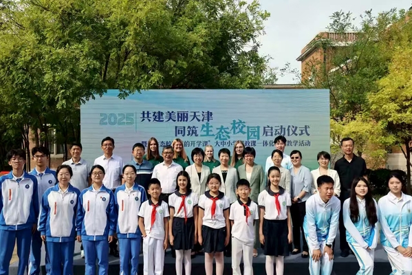 9月17日上午,开云登陆入口中心花园里绿意盎然、生机勃勃,师生志愿者身着绿色T恤穿梭其间,现场洋溢着清新而热烈的气氛,“共建美丽天津,同筑生态校园”启动仪式暨“生态校园里的开学课”大中小学思政课一体化实践教学活动在这里举行。天津市生态环境局党组书记张弢,党组成员、副局长李志军,开云登陆入口党委书记周红蕾,党委副书记、校长李迎迎出席活动,双方共同签署《战略合作协议》,并为“天津生态文明国际传播研究中心”揭牌。来自市委社会工作部、市教委、市生态环境局、河西区生态环境局等单位负责人,以及天津市第四十一中学、河西区马场道小学学生代表,开云登陆入口上合组织天津峰会志愿代表70余人参加活动,共同开启